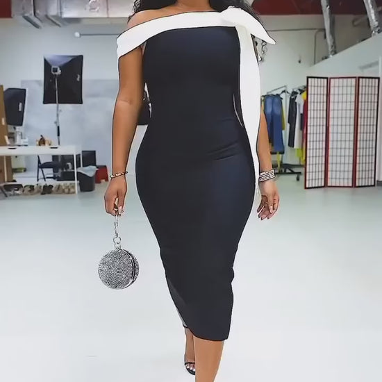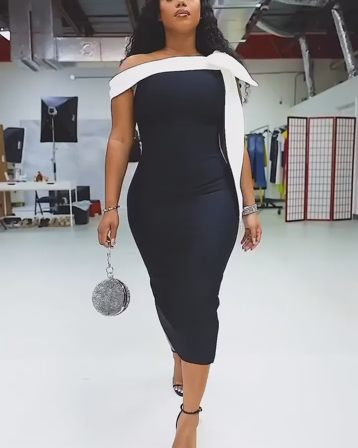 ELEGANT BOW ONE SHOULDER BODYCON MIDI DRESS